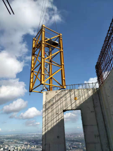 中核華興達(dá)豐浙江分公司承擔(dān)該項(xiàng)目的塔機(jī)施工服務(wù),為滿足天盛中心建設(shè)項(xiàng)目主塔樓施工的垂直運(yùn)輸需要,在該辦公樓核心筒內(nèi)安裝1臺STL420A-25t及1臺STL230-18t設(shè)備。根據(jù)現(xiàn)場施工進(jìn)度,需將STL420A-25t塔機(jī)拆除。